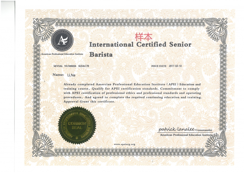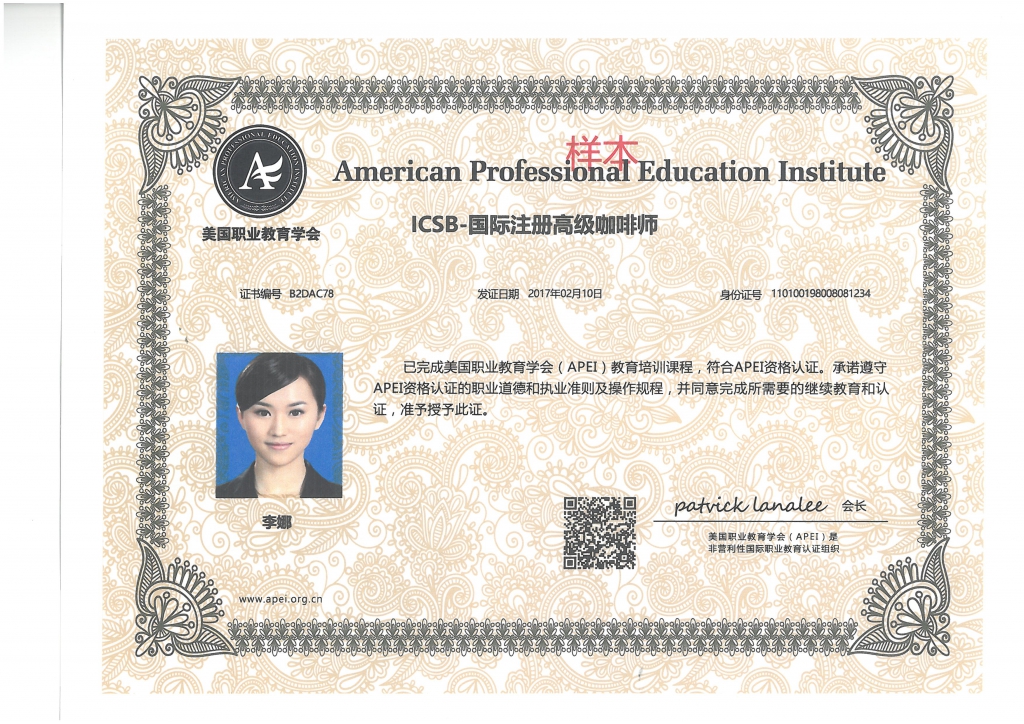 美國職業(yè)教育學會APEI調酒師、咖啡師、西點師職業(yè)資格證書