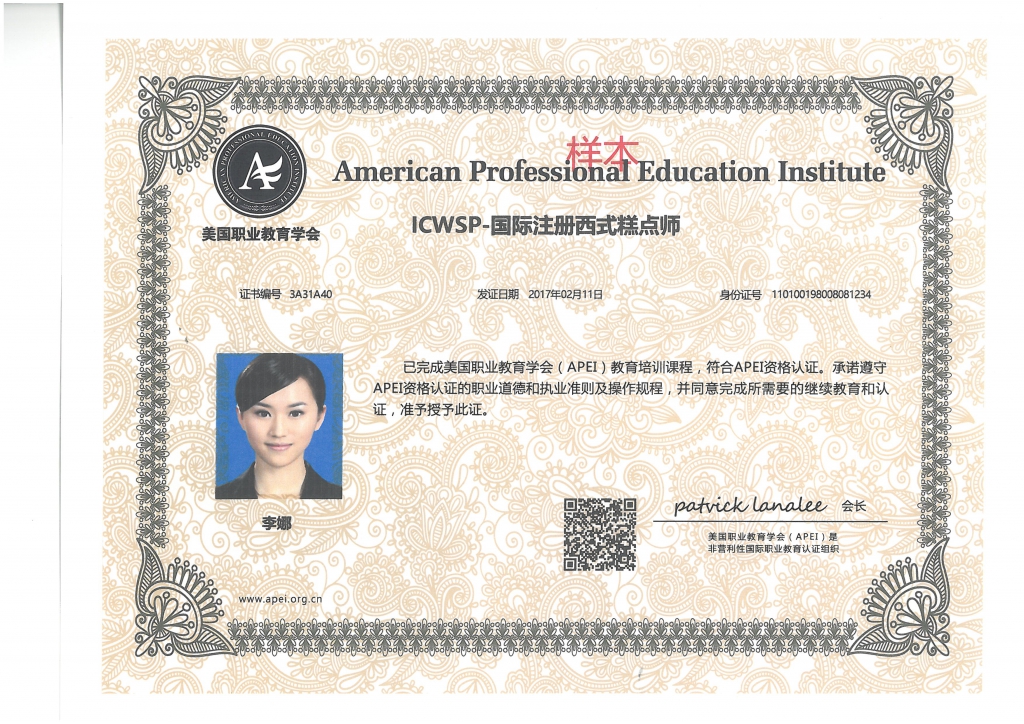 美國職業(yè)教育學會(APEI)是經“海牙公約”認證的非盈利機構,APEI的培訓認證體系得到了全體106個締約國的認可。其推出的課程體系及執(zhí)行標準均以美國職業(yè)資格的執(zhí)行標準為基礎。美國職業(yè)教育學會(APEI)已通過中國駐洛杉磯總領館的公正,因而進一步得到中國官方的認可。